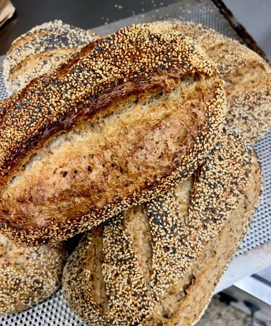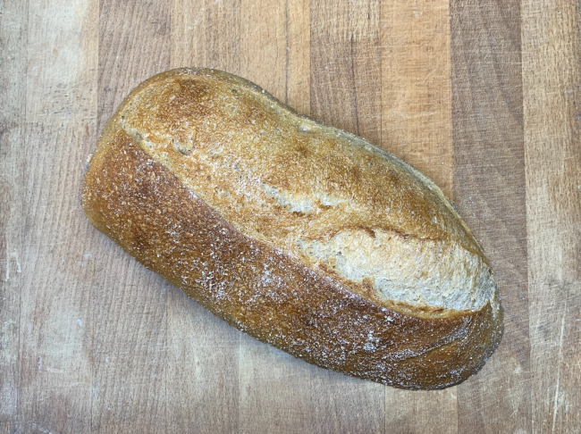 Vores surdejsbrød er et langtidshævet brød med karakteristisk syrlig smag og en god, sej krumme. Lavet på surdej, hvedemel, halvsigtet rug og durum.